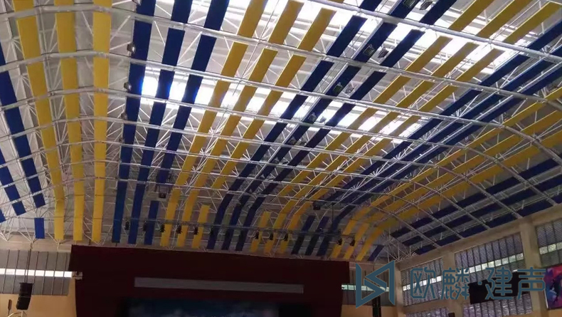 板狀的結(jié)構(gòu)最簡單,應(yīng)用最普遍??臻g吸聲體多用于室內(nèi)體育館,其各式各樣的形狀、擺設(shè)方式,能增強(qiáng)室內(nèi)的裝飾效果,最重要的是它的吸音性能,能防止大型廳堂內(nèi)產(chǎn)生回聲缺陷,并有效降低混響時(shí)間。